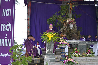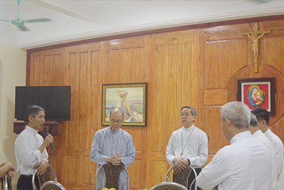 – Điều thứ hai: lãnh nhận Chúa Thánh Thần để loan báo Tin Mừng. Đức Tổng nhắc lại nhiều lần ý tưởng đi Đạo không phải là để lên Thiên Đàng một mình, nhưng là để loan báo Tin Mừng cho anh chị em chưa biết Chúa, là đem Chúa đến cho những người nghèo khổ, bệnh tật…vv. Đó là công việc bác ái cao cả, quan trọng hơn các việc xây dựng nhà thờ.